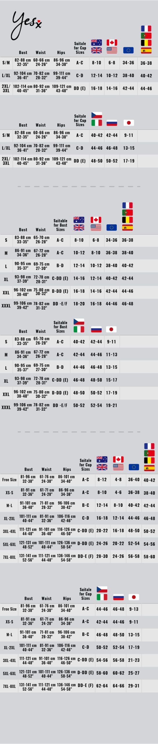 | Size | XS/S, XXXL/XXXXL, XL/XXL, M/L |